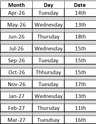 The dates for April 2026 to March 2027 are: